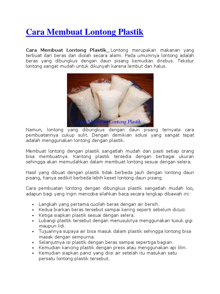 Cara membuat lontong plastik_ lontong merupakan makanan yang.