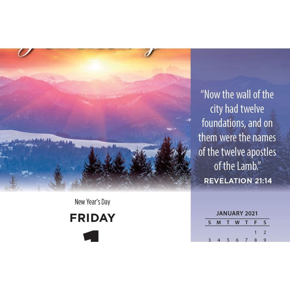 Was a little teeny tiny bit disappointed that they changed the backer to yellow this year, as the color seems to clash with some of the images. A feast for the eyes and food for the soul, this perennial favorite pairs a daily message of wisdom, comfort, and faith from the majestic kjv with breathtaking images of god's creation. Calendar by workman calendars god is our refuge and strength, a very present help in trouble.. Buy the selected items together. Add all three to cart. Comfort and inspiration from an eternal source, every day of the year.behold, this is the joy of his way, and out of the earth shall others grow. I think the green used many years ago was much nicer than the yellow of the last few years. Hope they will return to green next year. Ships from and sold by amazon us. This particular edition is in a calendar format. A glowing beach sunset elegantly echoes jesus's promise of eternal life. Everyday low prices and free delivery on eligible orders. Ship this item — temporarily out of stock online.